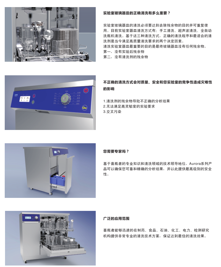 目前喜瓶仪器技术有限公司转为企业或公众服务,作为我们来说,最基本的也是第一要做的是实验室玻璃器皿的玻璃器皿清洗机清洗工作。确保给客户玻璃器皿清洗透彻,无杂质,无残留。以前实验室检测设备相对比较粗放,国家的标准也相对较低,实验室的检测样品量较少,手工清洗可以满足要求。随着生活水平的提高和公众健康意识的提高,国家质量标准基本与国际接轨。加上食品安全事故频发,环境污染严重,企业竞争的加剧,都在考验着实验室综合技术实力。高效的玻璃器皿清洗机清洗后才能指导企业生产出更高质量的产品,才能保证政府监管单位对社会提供更好地指导。喜瓶者力求为客户提供高质量产品为客户带来便利、为社会环保做出贡献